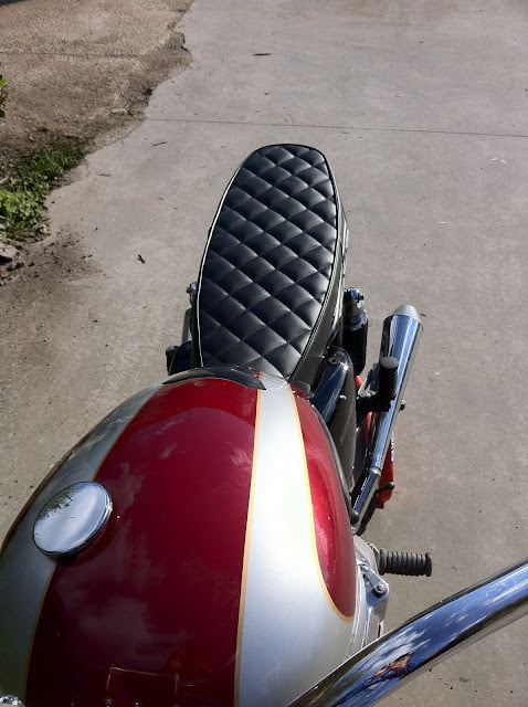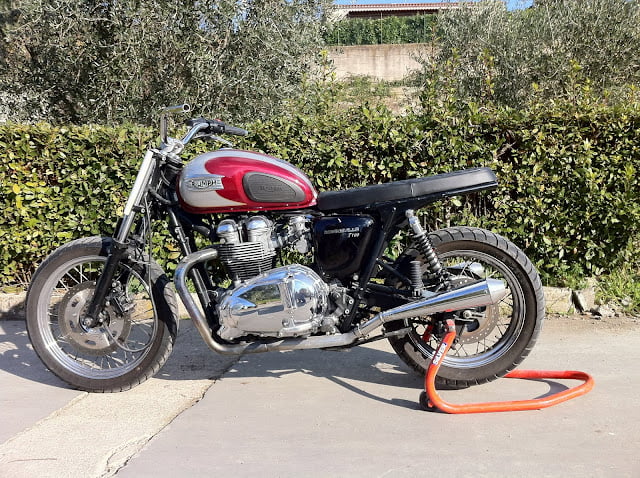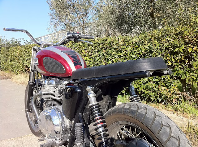Kompo-Tech, Italy have produced an off-the-shelf slim (St.Ives type) seat for the Bonneville/Thruxton/Scrambler. It cost €226.56 (and they do ship worldwide i believe) and should be available later this month