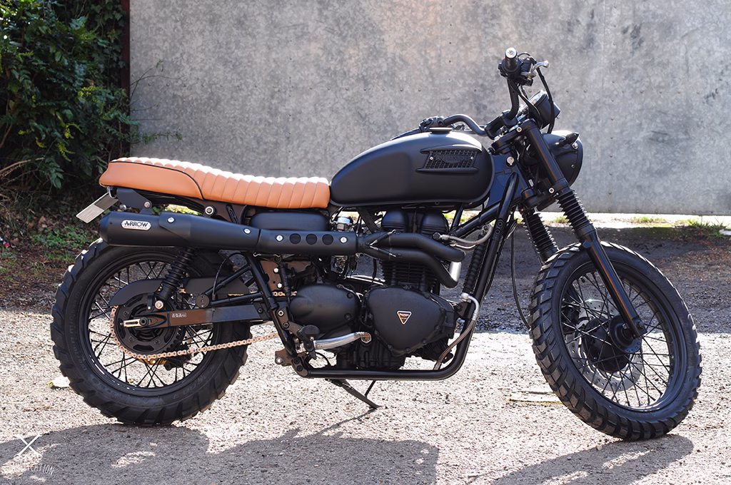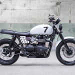 Many people assumed that the bikes they rode were Triumph’s latest Scrambler model; and that was because, like the Scrambler, those bikes wore a high-level, off road, Arrow exhaust. But, in fact, the starting point was nothing other than a humble Bonneville T100, a bike that Bonnefication got the exclusive on last year.