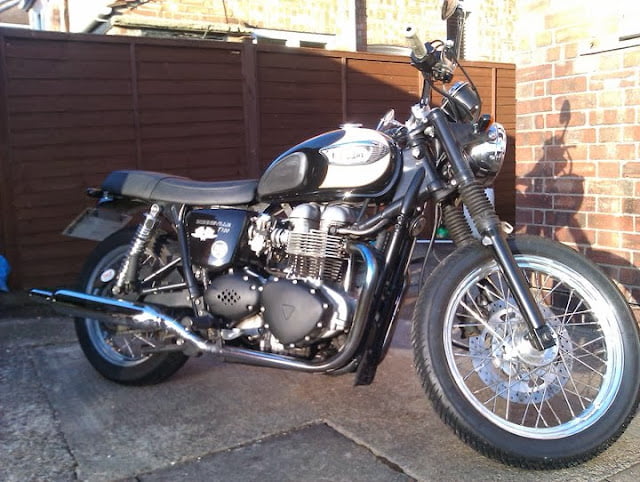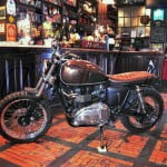 Dave, at first replaced the standard handlebars with Harley Santee bars, (horror) which he later changed for tracker style bars with with a bar end mirror (thank god) The standard indicators were ditched for smaller items, as well as the front mudguard, which was replaced with a Thruxton front ‘guard’. At the back, a fender eliminator kit with led old style rear light was fitted.