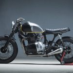 A brand new 2013 Bonneville was prised from the hands of Clint and Ray Davis, the owner of Brisan Motorcycles, and the guys set about their business transforming the bike into a ‘Cafe Racer’ — The guys used a mix of off the shelf British Custom and Joker Machine parts to make it easy for their customers to replicate.