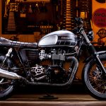 The T100 was then fitted with a set of British Customs Predators with wrapped headers – to get those performance upgrades running smoothly, the bike was also fitted with a Dynojet Power Commander V and then Dyno tuned. Finishing off the engine, the stock sprocket cover was trimmed down to expose what hides beneath.