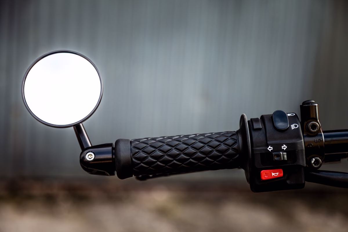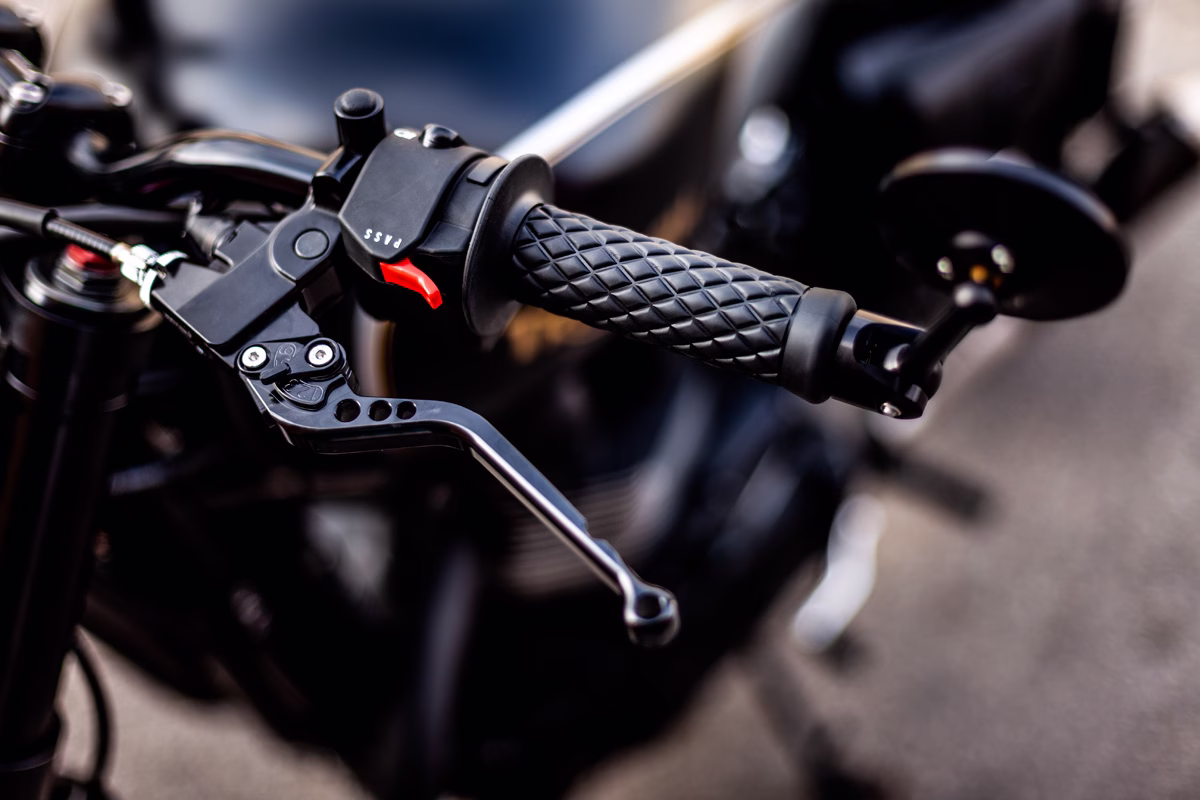 The Tiny speedo takes us on to a black 22mm Rizoma handlebar sporting black racing style clutch and brake levers, a Rizoma brake fluid reservoir, Biltwell grips, a set of practical and not hipster (style over safety) bar end mirrors, even though the stock switchgear was retained, it has made little difference to the overall aesthetics to this area.