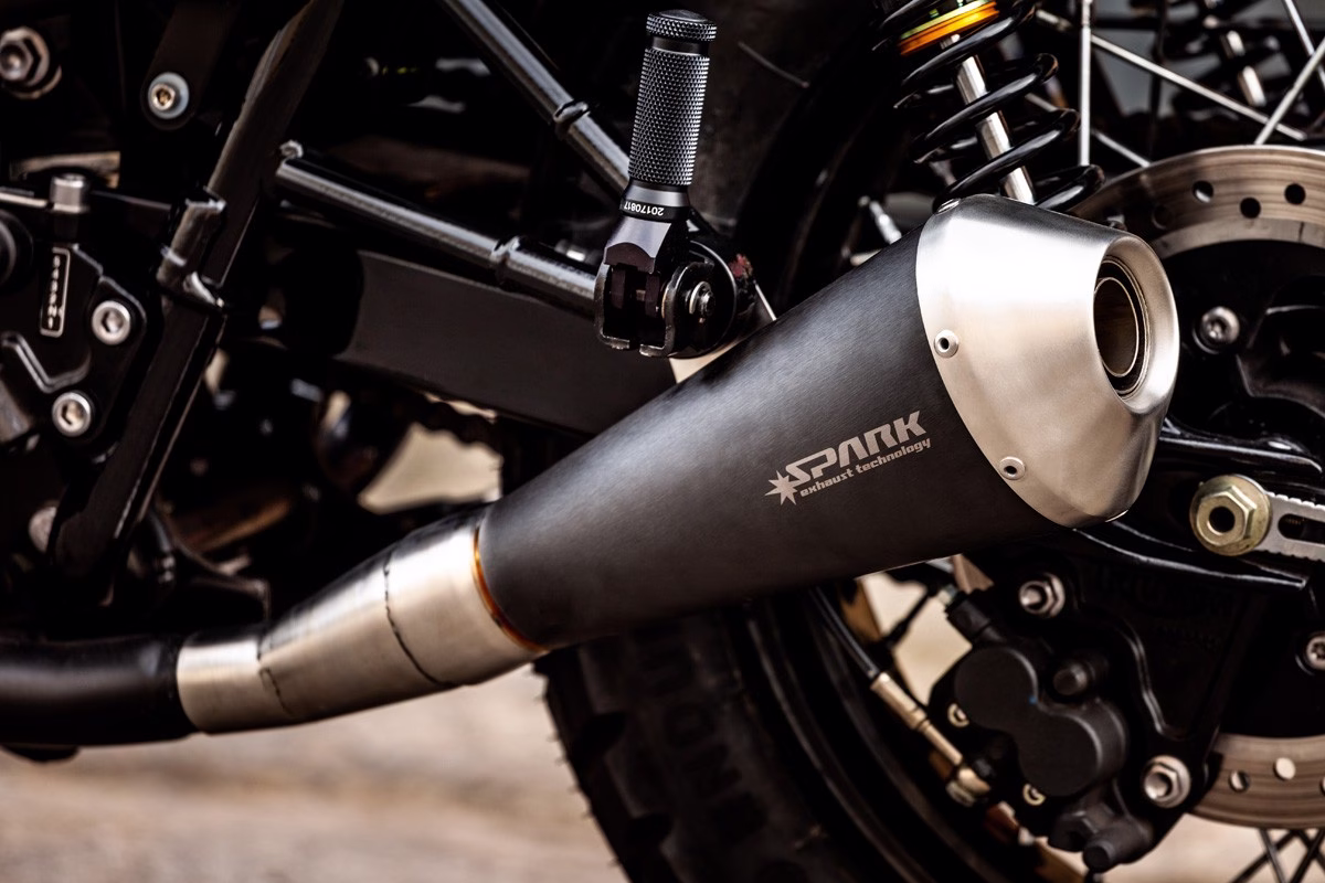 When it came to the Bonneville’s sound, the Macco team wanted to adapt a Sparks shorty exhausts mufflers to fit the Bonneville. Which I’m told the team are ‘highly satisfied with’ in both performance and sound, and I might add, in looks too, that black ceramic coat looks the business.