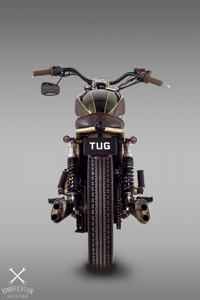 To finish this rather exotic Triumph Twin, the stock wheels have been shod in the retro Avon Safety Mileage tires which I rather like the look of, also the stock OEM shocks have been upgraded to units from Ohlins. Again another great looking and well put together Triumph from Daniel and Pedro of Ton-Up Garage.