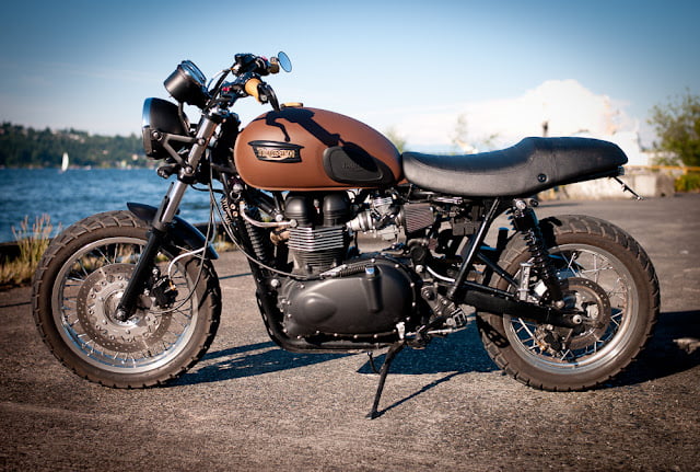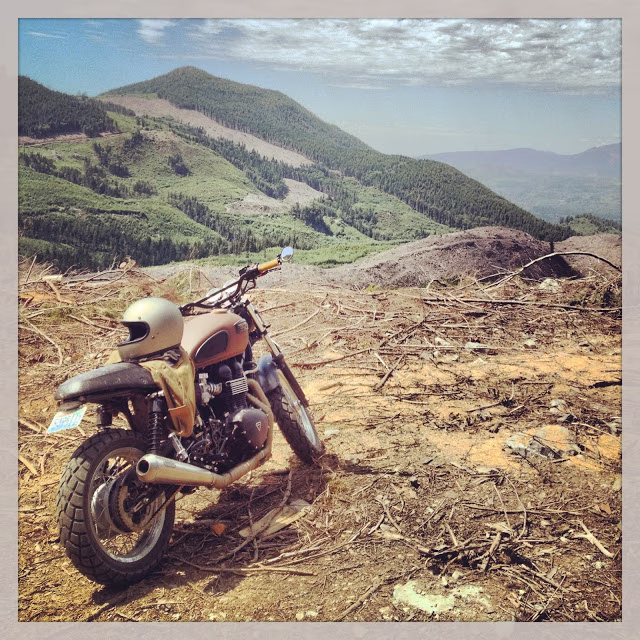 The cafe bars and street tires were not ideal of fire service roads and back country but I made it work. Over this past winter I stripped it down and started over with the idea of a Thruxton/Scrambler hybrid to satisfy my need of on and off road riding.