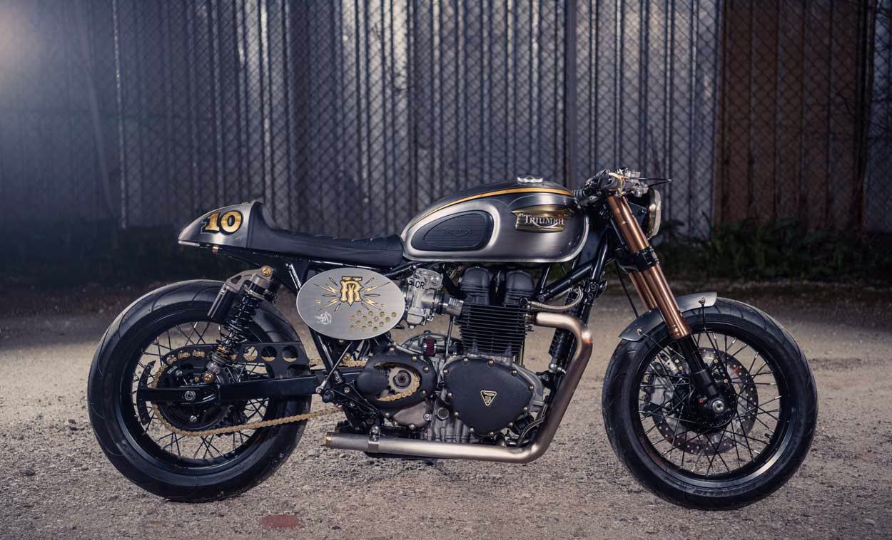 The result is the El Matador 2, based on an earlier Triumph build, the ‘El Matador’, which is a very pretty 1972 650cc Bonneville Bobber, finished in brass and clear coated metal. Not wanting to build a carbon copy of the El Matador, Tony decided to rework it Cafe Racer style, and using the more up to date Hinckley Twin.