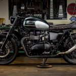 While the cosmetic changes were made to the Triumph’s tin-ware, the Bonneville itself was undergoing a few performance and handling upgrades, with the front end being swopped for a set of USD forks from the Suzuki GSX-R, fitted with Traxxion Dynamics forks adjusters.