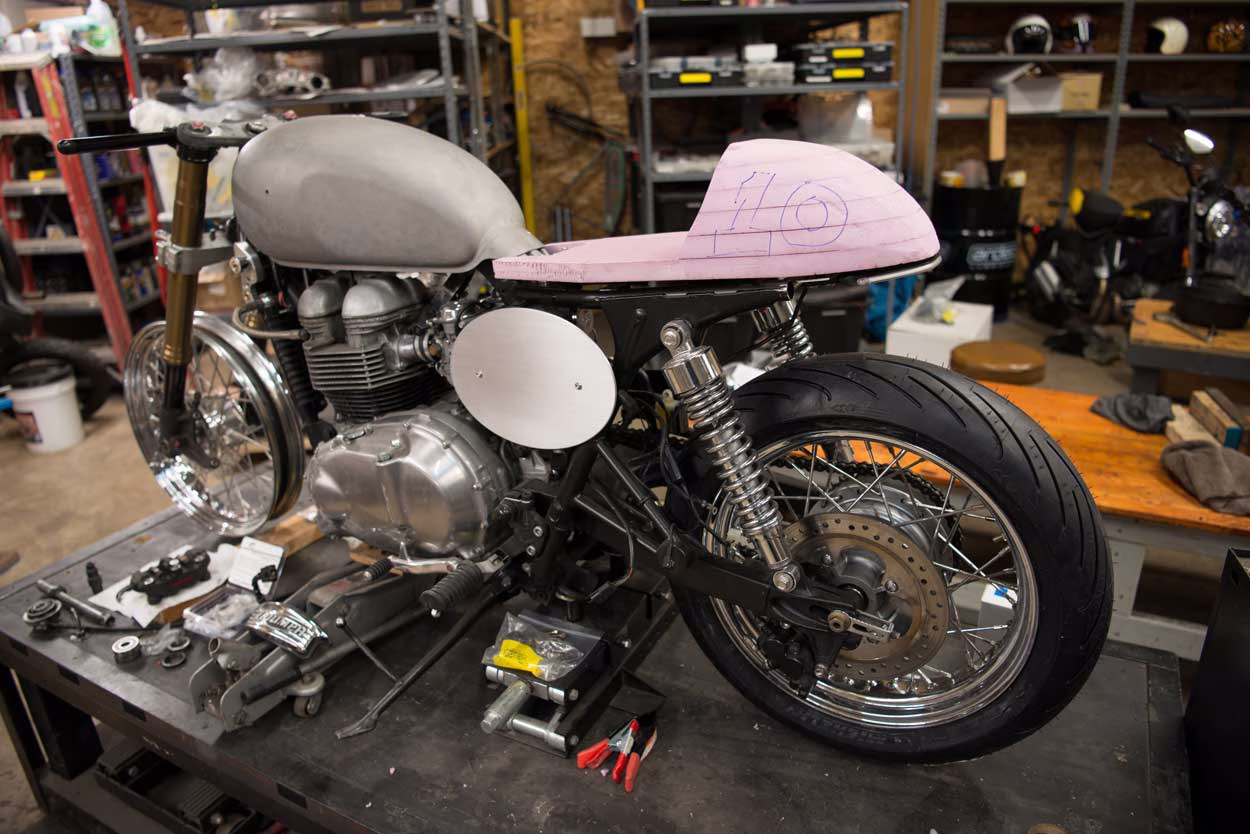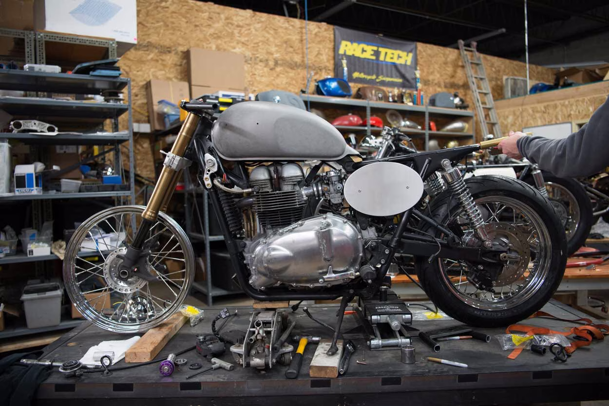 A well kept 2005 carb model Bonneville, already sporting a few of the usual aftermarket accessories was found as the donor bike, though these were mostly ditched in the strip-down.