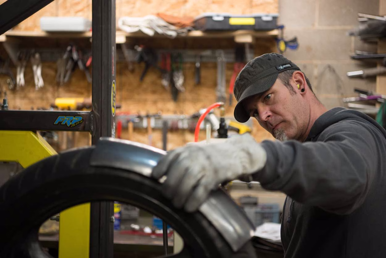 The modified stock front hub and rotor were retained, as was the rear hub, both re-laced to new set of 17” Sun rims, using Buchanan spokes, and shod with a set of Michelin’s Pilot Powers tyres.
