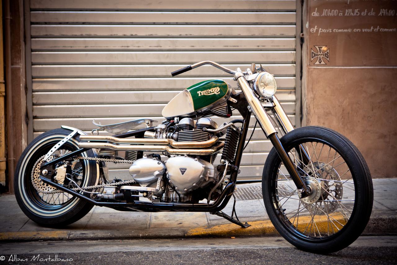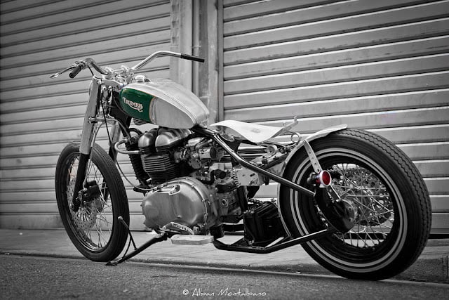 Spotted this Triumph Bonneville Bobber beauty belonging to David Belhassen over on Garage Project. I thinks its a bit naughty! Photography by Alban Montalbano See also AIR COOLEDPro BuildsTriumph CustomsSouth Garage Milan — Bonneville ‘Endiro’