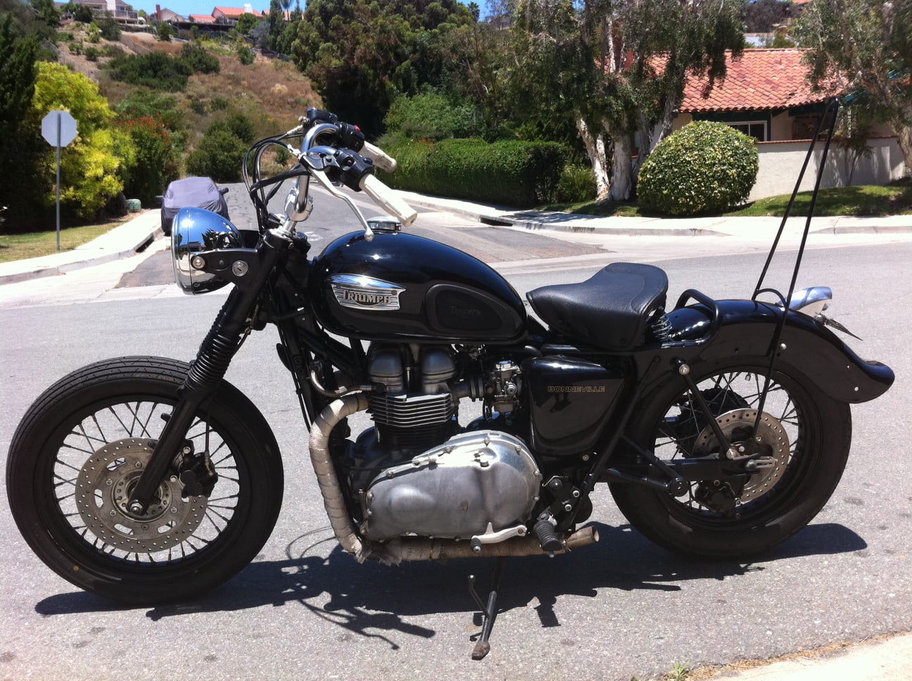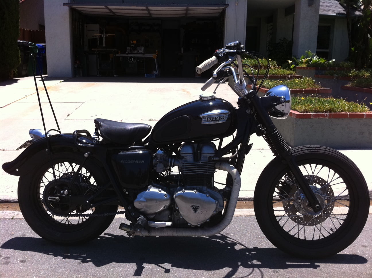 More emails….. Here are some photos of my chopped 04′ trump -Sean Nice bike Sean! See also AIR COOLEDPro BuildsTriumph CustomsTriumph Motorcycles LtdBonneville Performance Street Tracker 995