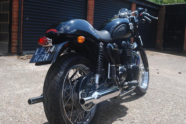 Hi there, thought I’d send you a couple of pics of my 2004 Bonnie black. Slowly getting there, just changed from western bars with single seat to the Ace bars and Thrux seat. Ikon rear suspension and fork springs. Rejetted carbs with large bellmouth and Tors, also have reverse cones which I may put back on soon. Farnham mild tune with airbox removal is next on the list.