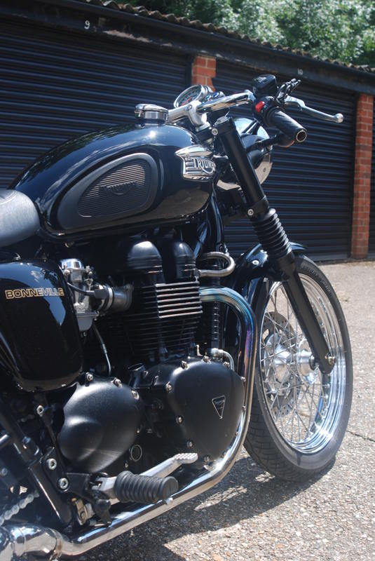Hi there, thought I’d send you a couple of pics of my 2004 Bonnie black. Slowly getting there, just changed from western bars with single seat to the Ace bars and Thrux seat. Ikon rear suspension and fork springs. Rejetted carbs with large bellmouth and Tors, also have reverse cones which I may put back on soon. Farnham mild tune with airbox removal is next on the list.