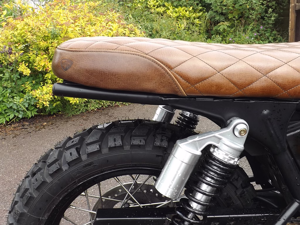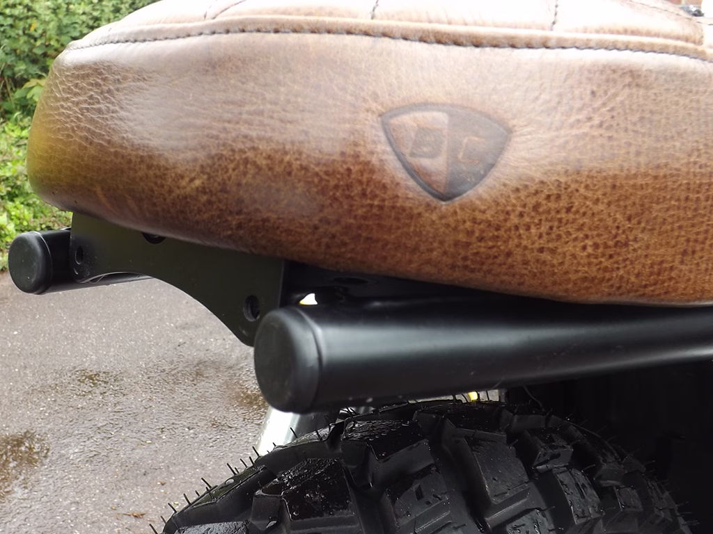 The Diamon Stitch, rodeo brown leather which covers this particular limited addition slammer seat is something to behold and looks fantastic in the flesh (no pun intended) The info on the BC website goes on to tell me that the Slammer Seat delivers “the same low and lean looks of the original Slammer…. its slimmer profile encourages a more natural riding position….its stripped down, tuck and roll design was developed explicitly to expose the elements of timeless beauty normally hidden by the stock seating on your modern classic”…