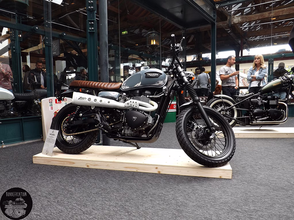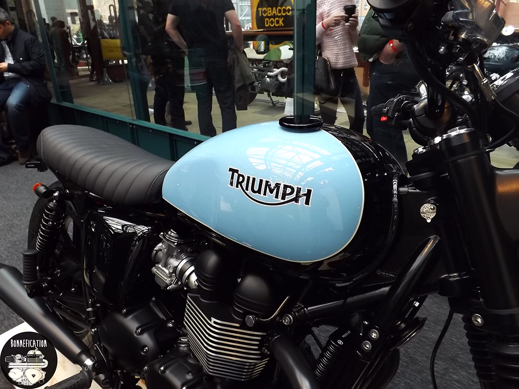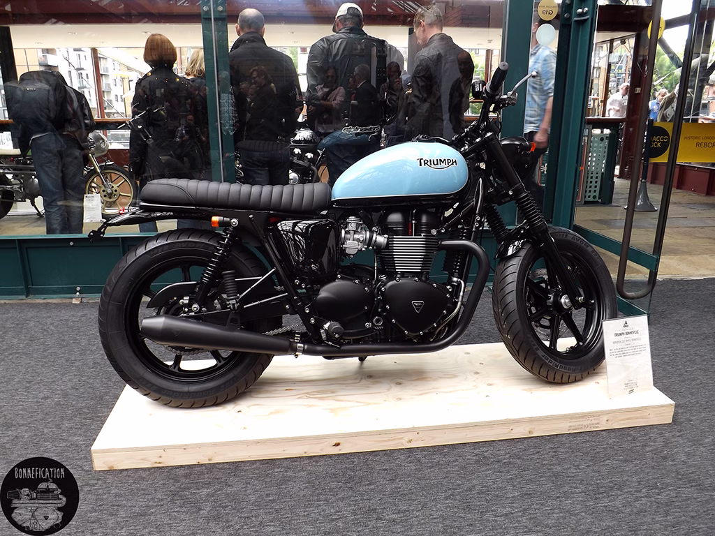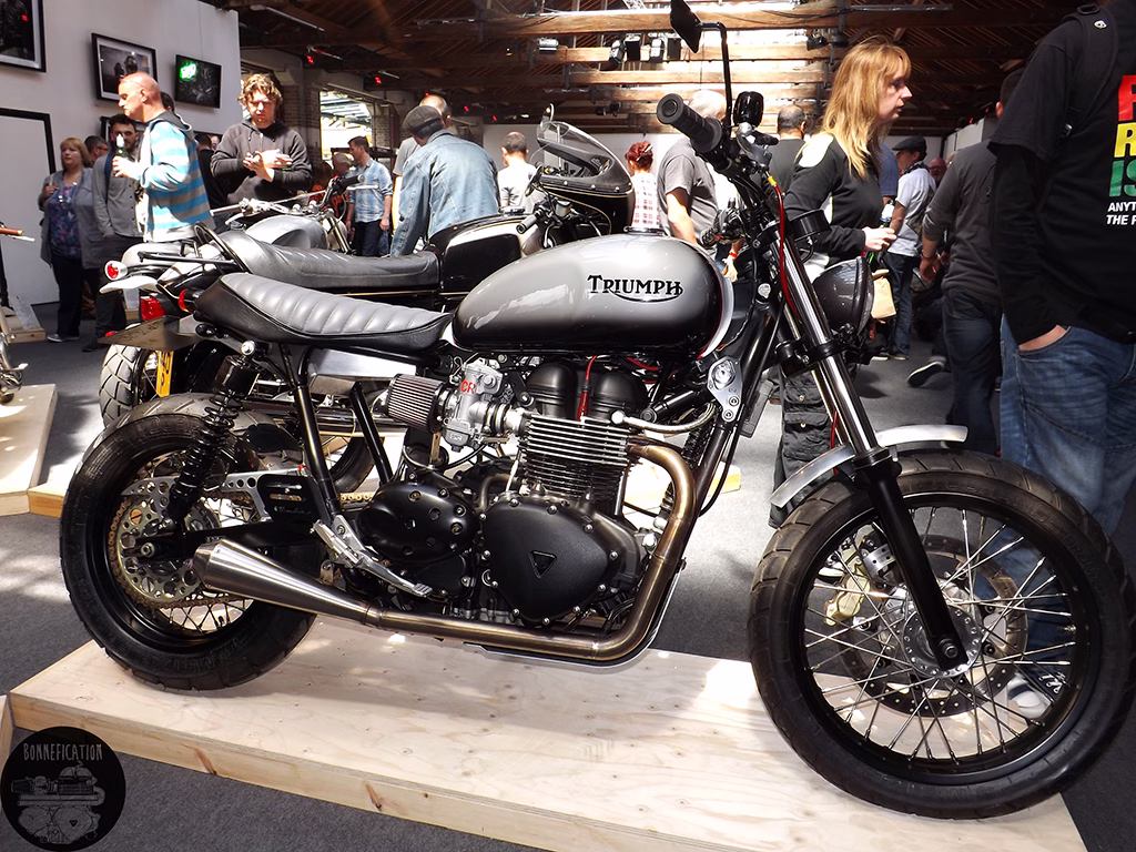 The third event from the BSMC crew was in association with Triumph, so there was going to be plenty to see for the modified Triumph Twin lover. The previous two ‘Events’ had been held at the Shoreditch Studios in London’s EC2. The third show, due to the ‘Events’ incredible success, has been moved to the equally cool Tobacco Docks in E1. Its good to see Triumph getting involved in the ‘Alternative’, ‘New Wave’ custom motorcycle scene. Especially one that so predominately involves the Triumph Twin. Perhaps there could be a Bonnefication display at BSMCIIII, in association with Triumph of course.