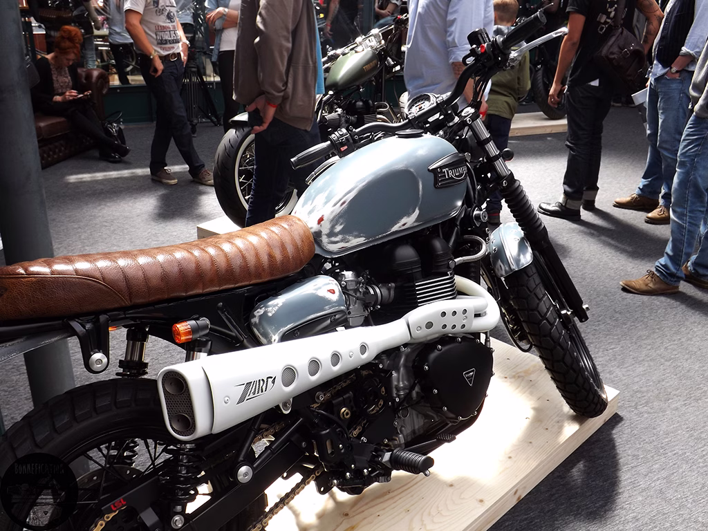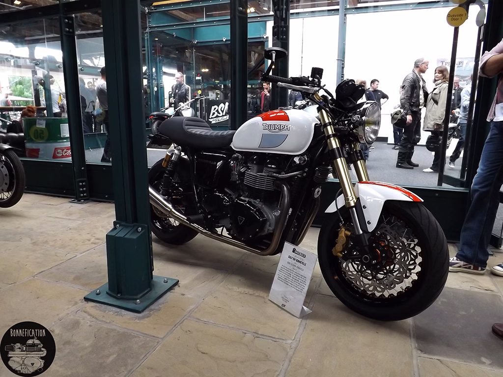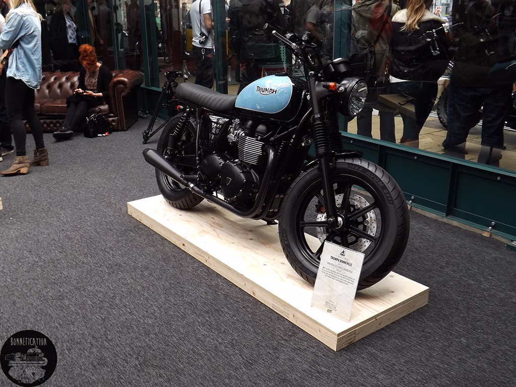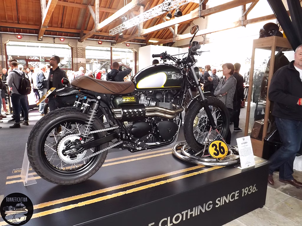 The third event from the BSMC crew was in association with Triumph, so there was going to be plenty to see for the modified Triumph Twin lover. The previous two ‘Events’ had been held at the Shoreditch Studios in London’s EC2. The third show, due to the ‘Events’ incredible success, has been moved to the equally cool Tobacco Docks in E1. Its good to see Triumph getting involved in the ‘Alternative’, ‘New Wave’ custom motorcycle scene. Especially one that so predominately involves the Triumph Twin. Perhaps there could be a Bonnefication display at BSMCIIII, in association with Triumph of course.