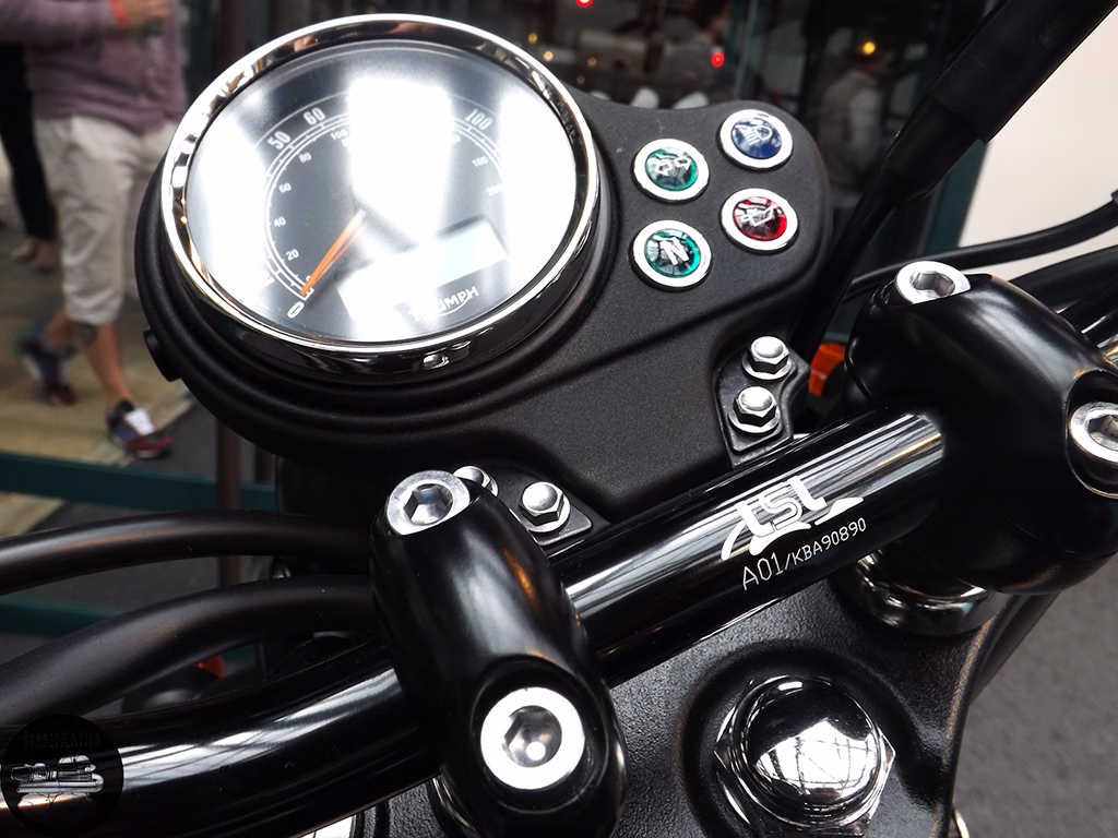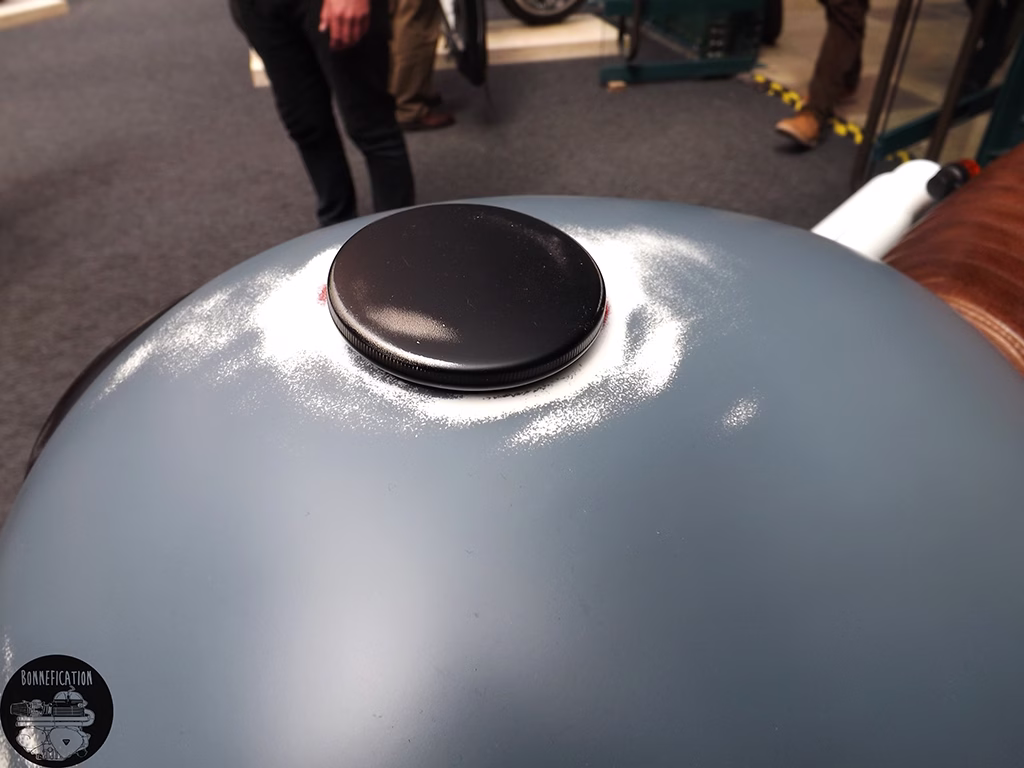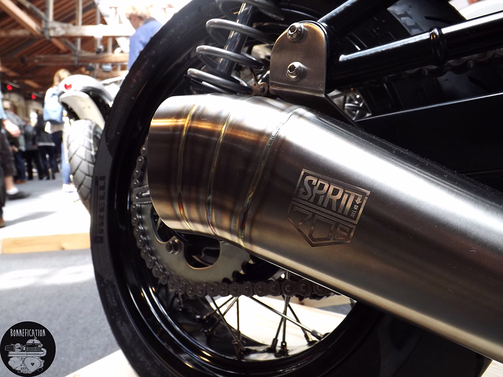 Just a short walk from the Barbour A225, were a further selection of Spirit of the Seventies builds, again sporting very nice bespoke SOTS exhausts. I happened to bump into Kev Taggart and Tim Rogers of SOTS, who were standing near their builds answering question from potentials customers. Both Kev and Tim expressed just how much they on loved working on Hinckley Triumphs, it being a great starting place for a custom build. Something I think we can all agree on.
