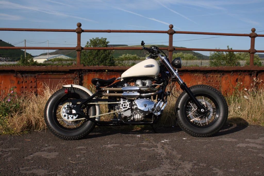 We don’t see enough chopper here on Bonnefication, perhaps they are out of trend in a world of Street Scrambler, Trackers and of course Cafe Racers. But saying that they are about, just take a look at the builds by Jack Lilley, Gilsons and East London Chop Shop and now the British based the father and son team of Lyndon Poultney “cocknose” and Stacey Poultney “stasss of Cocknose Choppers, who have tured their gaze to a 2005 Triumph America, a version of the Triumph Twin we too don’t see enough off. I recently contacted the guys at Cocknose Choppers and asked…‘so… whats it all about then…” Lyndon Poultney continues…