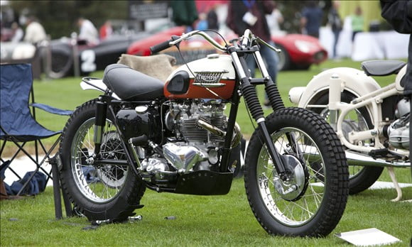 Came across this pic….its simply takes my breath away…. I want that bike in my garage! 1957 Triumph T110 Desert Sled See also AIR COOLEDPro BuildsTriumph CustomsBikebrothers 2015 Triumph Bobber ‘Muzzleflasher’