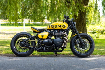 Steve showed up some weeks later with a bike that ticked more boxes than the rest he’d looked at… the ever-popular Triumph Bonneville. This one was an ’07 model, sporting some custom bolt- on items.