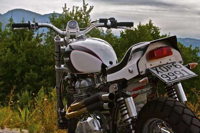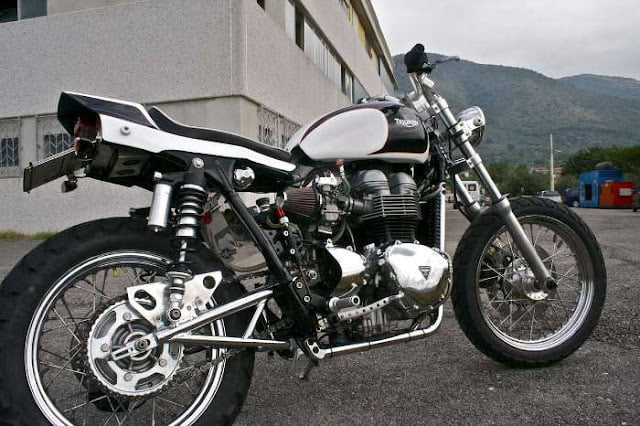 Another Italian workshop that has been modifying The Bonnevill is G. Garage of S.Polo dei Cavalieri. Who normally works with classic bikes. I think they made the seat and modified the tank as well as making that bloody tasty swing arm, but I no speaky the Italiano.