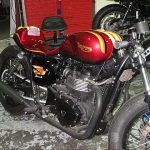 ‘The 865 cc engine internals are stock, but the removal of the oil cooler threw me at first. It’s apparently had no injurious effect: “with richer jetting and new pipes, oil temperatures have not been a problem,” says Hammarhead. “I constructed a custom Spurgin oil cooler for the bike, but while I was waiting for the lines to arrive, my brother encouraged me to throw in a few plugs and light the bike. We ran it with an oil temp gauge and slowly became more confident. For nervous folks (like me) an oil cooler is a no-cost option.”