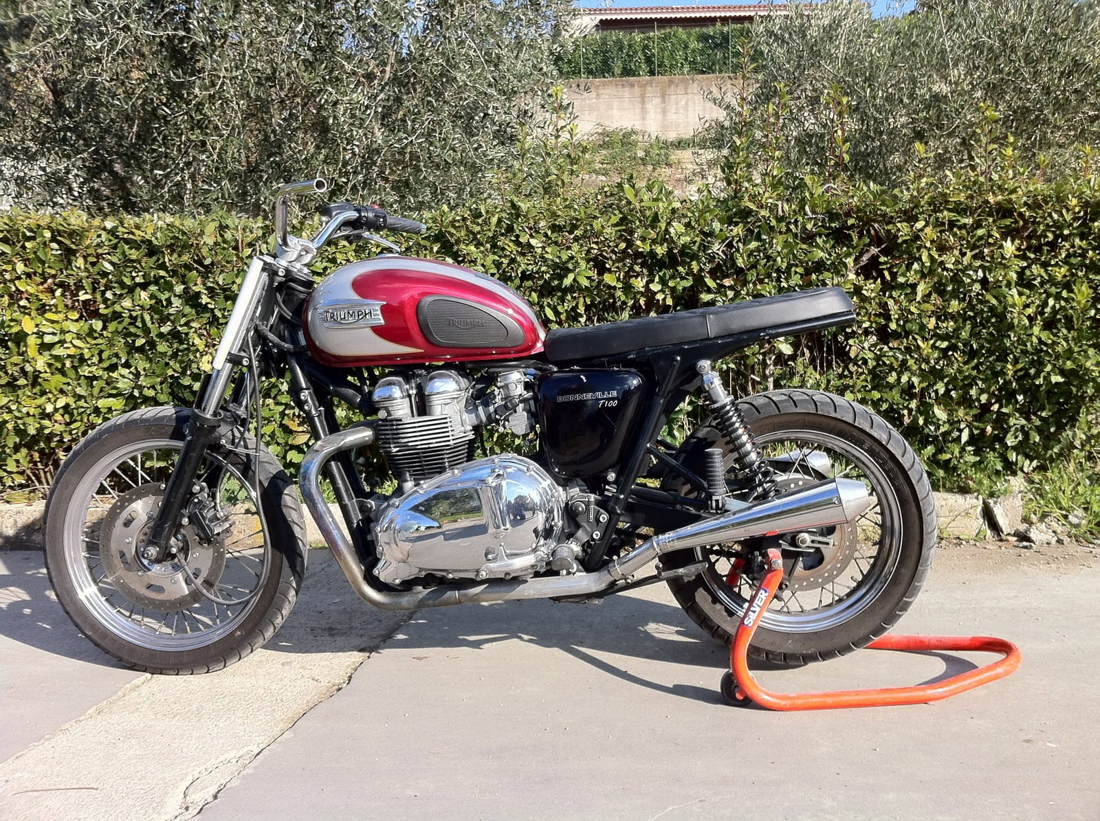 Kompo-Tech, Italy have produced an off-the-shelf slim (St.Ives type) seat for the Bonneville/Thruxton/Scrambler. It cost €226.56 (and they do ship worldwide i believe) and should be available later this month