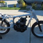 Glen’s 2007 Triumph Bonneville, Custom rims to fit a 180 tire,custom fiberglass race seat,belly and front fender along with thruxton shocks at rear, custom clip ons, custom foot controls and a wild exhaust to match.