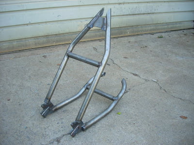 “2” stretch, 1″ drop, weld on tail section is made of .120 DOM tube. All Brackets, Gussets, axle plates etc are either laser cut or CNC machined for accuracy. Uses stock rear wheel, axle, and adjusters. As seen on our feature bike “Bonni “