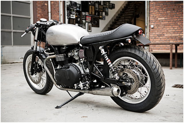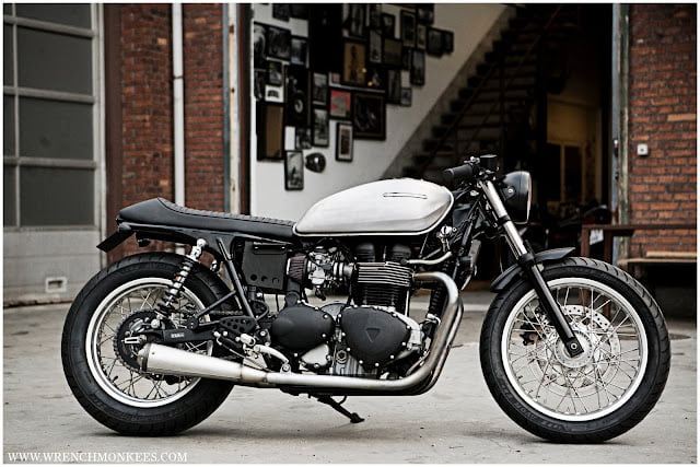 Lately the Wrenchmonkees have been focusing their attention on working on more modern motorcycles. Today they have release the very first pictures of the T100 that is sitting in my garage awaiting for her new home Atelier Hook Motors Bologna to be completely ready. The T100 is a pure Cafe Racer machine, low and aggressive in a beautiful British racing green colour. It has a long list of specs, but I will talk about it in a later post.