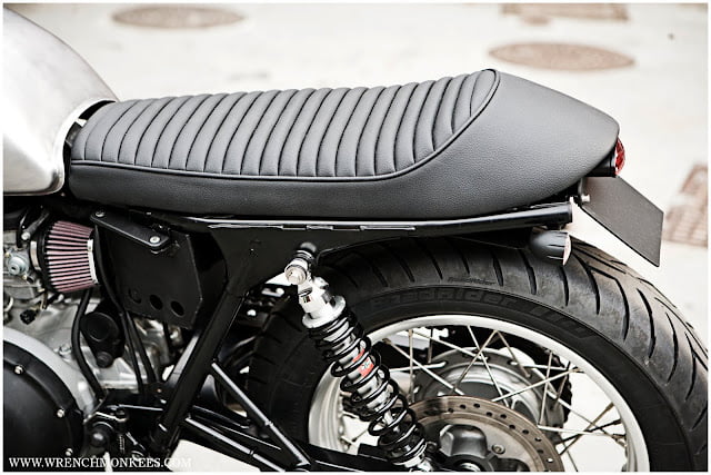 Today they have also published some picture on another amazing Triumph, this one is a naked and it is the one I wanted to talk about today. The list of specs is long: Kawasaki tank, Wrenchmonkees seat, Supertrapp exhaust, new handle bars and motogadget, new front and rear lights, new tyres, new front fender, custom battery box, Bitubo shocks, also the bike has been lowered of 3 cm. This one is going to Holland, but if you want a similar Wrenchmonkees Triumph for Italy, we can do that.