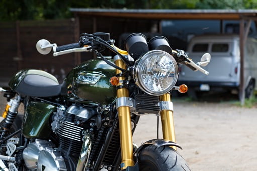 Hello, news from the TRIDAYS – our Mastermind Uli Brée has a new nice bike in his garage: Mr. Hudson – named by the butler of the series “upstairs, downstairs” is an ordinary bike for every day built by LSL with Öhlins-parts. Ordinary not really, it’s beautiful, the colour is breathtaking and when you drive it, it is just a pleasure. Pictures: by LSL