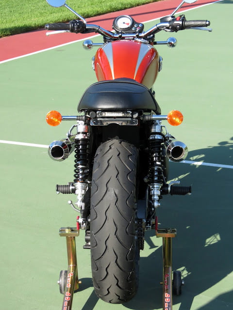 Stock motor, new forks, triple clamps, shocks, rims, tires, front brake, bars, paint, pipes, Streetmaster in-frame oil cooling and ignition unit.
