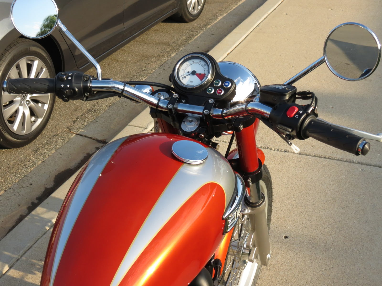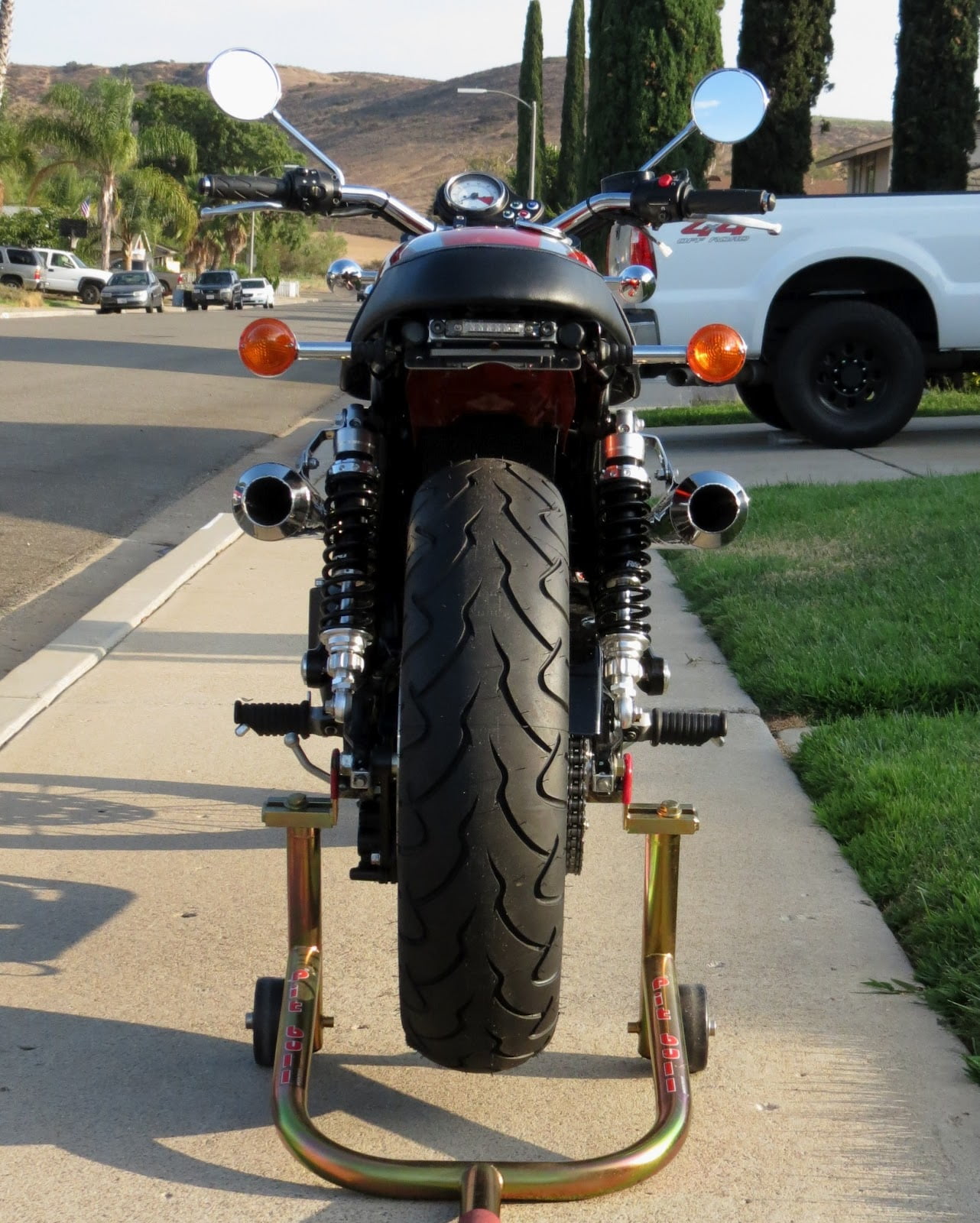 Stock motor, new forks, triple clamps, shocks, rims, tires, front brake, bars, paint, pipes, Streetmaster in-frame oil cooling and ignition unit.