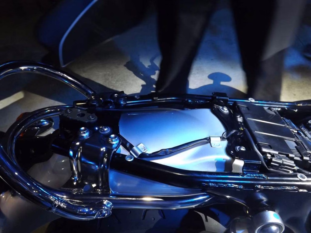 His answer was yes, if an owner did want to remove it and find an alternative it could be done, but would clearly void any warranty. But more importantly due to the bikes electronic warning system, if the bike began to overheat you would get a warning light so could switch the bike off and let it cool down. This is rather handy if anybody wanted to experiment with an alternative. I also learned that these engines are in fact still partly air-cooled which reduced the size and weight of the engines, unlike if they had been fully water-cooled.
