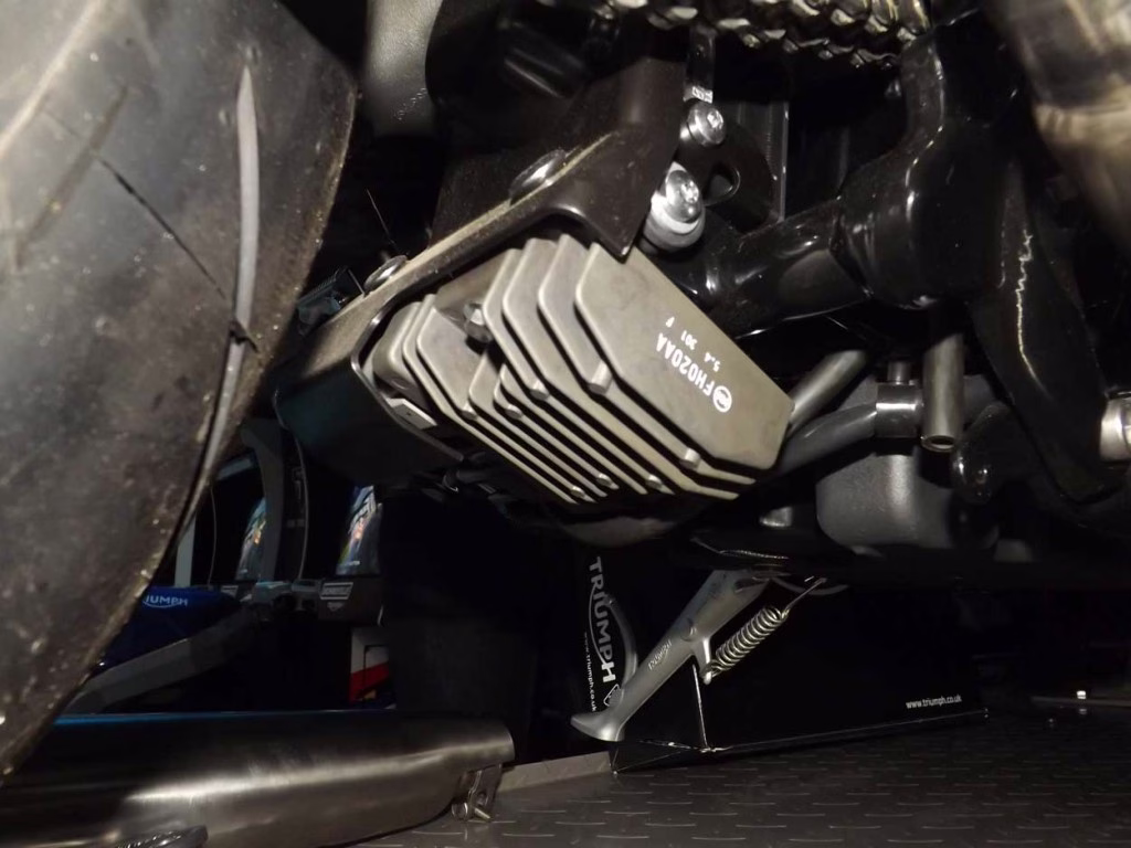 The first area I first focused on was this new radiator which has met with a mixed reaction from people when it have first been seen in spy shots. I had to say it wasn’t as ugly as I thought, but then many of us don’t like the much smaller oil cooler on the previous model, so we are a tough audience — for many I cant see the larger radiator being a problem — I spoke to the Triumph engineer who was one of the chaps behind the development of the new 900cc and 1200cc engine, and I asked him if it was possible to change the OEM radiator for a much smaller unit or feed the coolant through the frame is someone so chose.