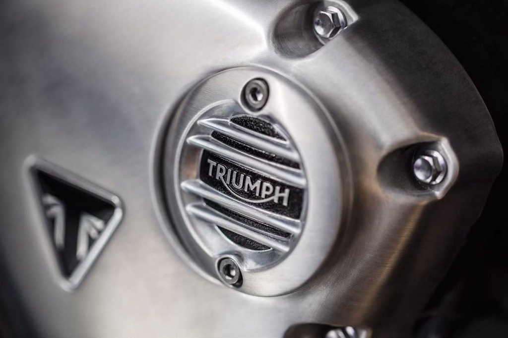 – Compact headlight with a signature Triumph bulb cap cover badge