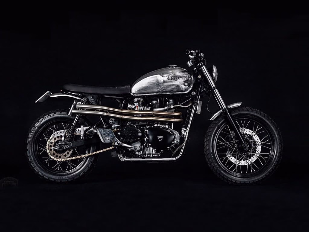 Subtle is clearly not what Diego and Riki wanted for this Bonneville, instead the sanding is raw and unfinished, yet not without detail, with the tank being hand engraved, tattoo like with a Triumph logo. The removal of the Triumph’s protective layer also extends to this Twins detachable engine cradles, which have also been sanded down and clear coated.