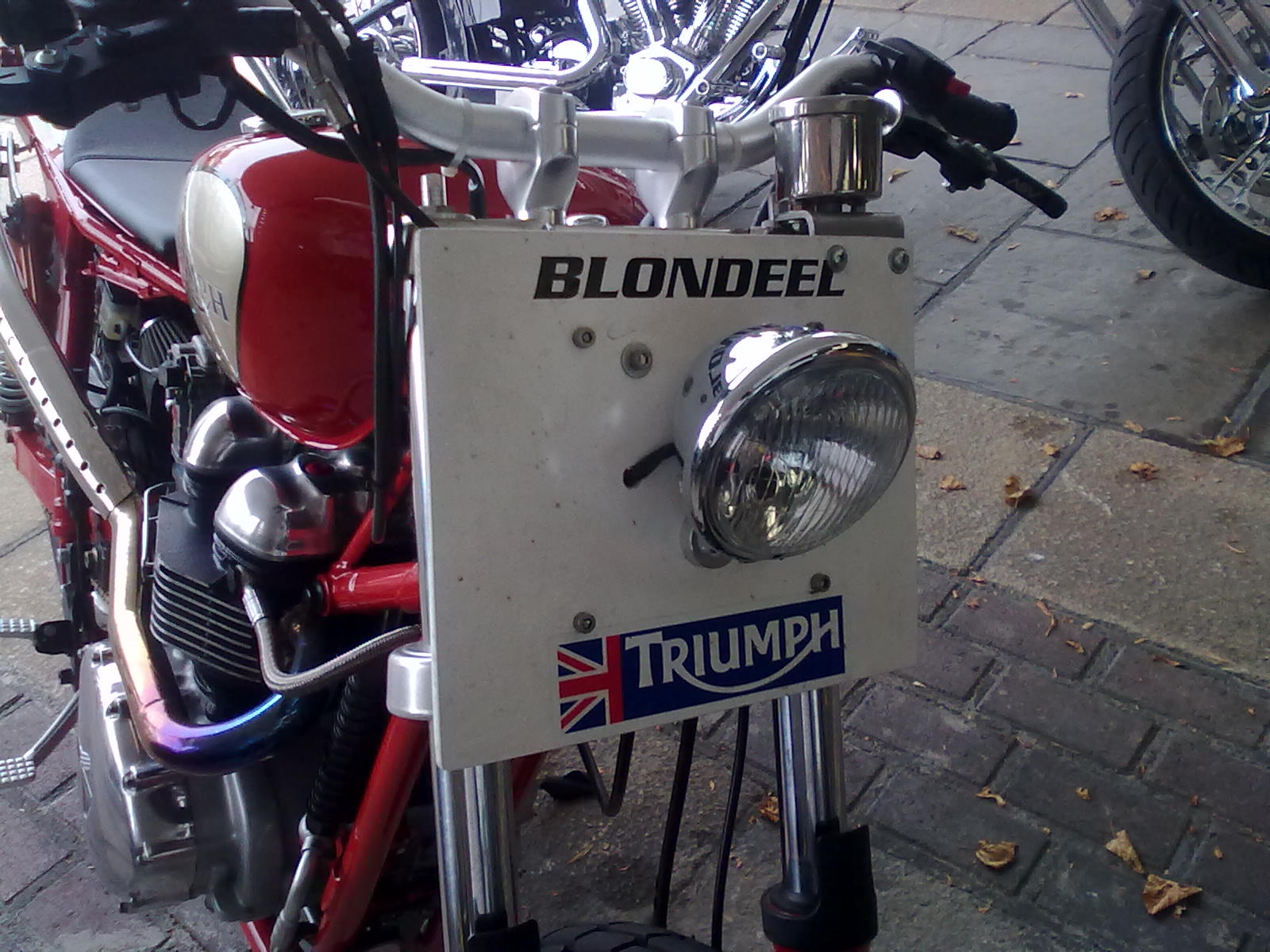 …. this one rides into mine. Stuck at lights in my home town of Christchurch, when what should ride past me but the Blondeel Tracker as posted on this blog and on the MCN website. It’s not easy following a bike in heavy traffic, but a police car helped a little by slowing the bike down long enough for me to gauge where it was heading. I caught up with the bike outside Battistinis The bike now lives locally, so should be seeing quiet a bit of it.