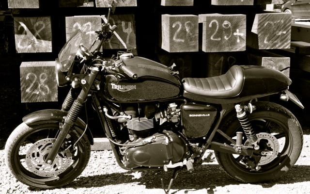 Some pictures of my "Peppery Bonnie" (2011) customized with the help of Zard, Wilbers, LSL, Dart Fly, 8negro Speed Parts and TC moto Belgium. Thanks to have inspired that. Raoul.