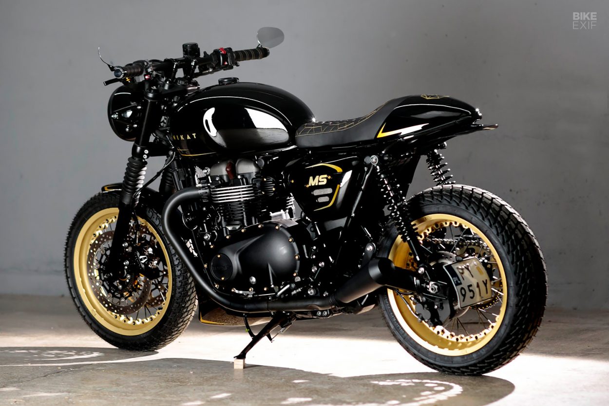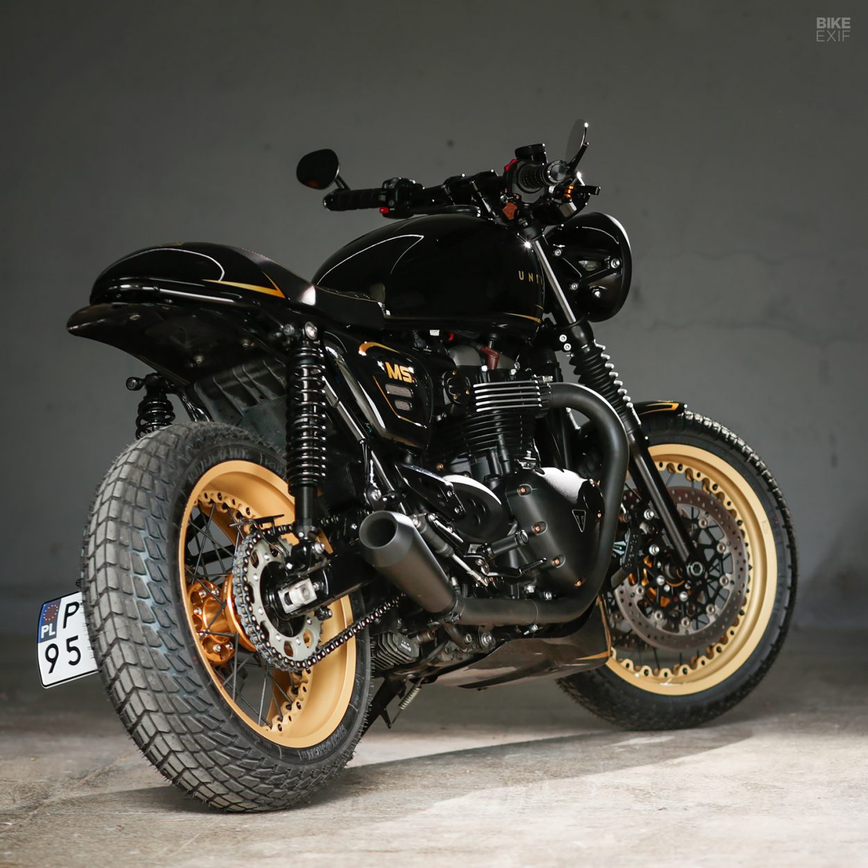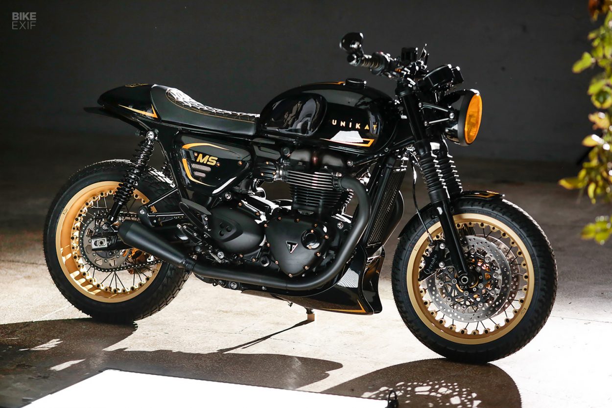 The Triumph Speed Twin, customized by UNIKAT Motorworks, stands as a remarkable fusion of classic British engineering and bespoke craftsmanship, elevating the iconic motorcycle into a unique piece of functional art. This custom build is a celebration of precision, performance, and aesthetic excellence, perfectly exemplified through its striking black and gold color scheme, extensive performance upgrades, and meticulous attention to detail.