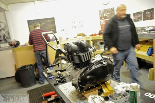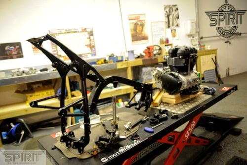 Spirit guys are preparing for final build…. Ah the luxury of a proper workshop See also PART & ACCESSORIESTriumph CustomsMAS Pipes