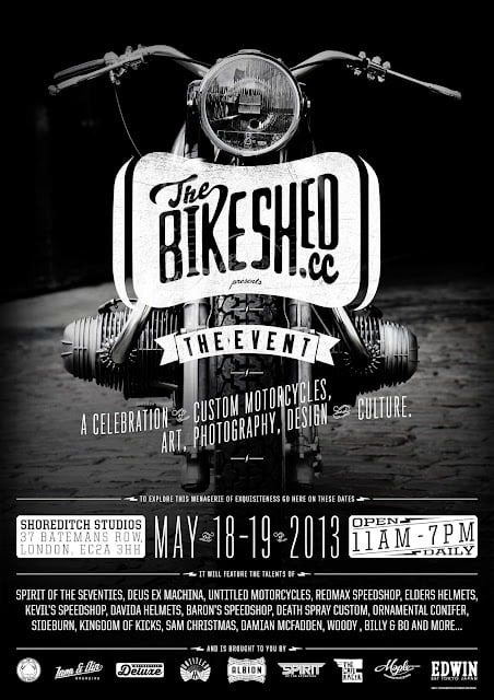 Join the guys at The Bike Shed in a celebration of all things related to the retro-classic scene (sound up my street for sure) that combines Cafe Racers, Brat Style, Scramblers (ok…im in) and Customs under one virtual roof, with inspiring photography, rule-breaking art and design, plus you can even walk away with a new haircut or a tasteful tattoo, should the urge take you. There will also be outside space to hang out, plus good food and good coffee.