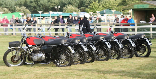 I have just finished reading the March issue of Classic Bike Magazine which has an interesting article on the British Royal Signals Motorcycle Display Team. The White Helmets. While reading the article I had an idea. The thirty man team that make up The White Helmets are currently riding L F Harris Triumph’s TR7V 750’s which were built in 1999 and only now are coming to the end of their life expectancy (After the collapse of Meridian L F Harris built the TR7V and750cc Bonnevilles under licence from John Bloor who in 1991 opened the Hinckley Triumph factory ). The Team had already looked at the Classic Hinckley Triumph range as a prospective replacement but found them too heavy, something many have said of the range. Considering just how many motorcycles the White Helmet team use, Im sure someone could make a profitable, lighter, stronger but still ‘Classic’ looking frame for the Hinckley Twin, which could be used by the display team as well as a few others who would love a practical off-road frame for their Hinckley Twin engine. I recently features the Mule/Streetmaster framed Flat Track bike on Bonnefication which utilises the Hinckley Twin, just how many would need to be produced to make the frame economical I don’t know, less than thirty perhaps. Maybe Richard Pollock could design and build a frame for a Triumph Dirt bike, now that would be interesting.