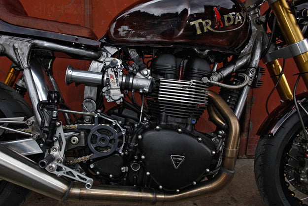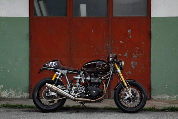 For the sixth year, enthusiastic fans of the Triumph brand descended on the town of Newchurch in Austria. Regardless of the English weather a total of 21,000 participants from 19 nations formed the largest TRIUMPH-party in the world. As in previous years, the program included around the clock live music, stand up comedy ( how funny is an Austrian stand up comedian?) tours and test drives, but above all the spectacular stunt show. The highlight of the weekend was the showing of Tridays-Eleven on Friday evening a highly modified Hinckley twin that has had the magical touch from many of Europe’s top builders such as Q-Bike, LSL, Ivo Tschumi, Michael Schönen.More info on www.bikeexif.com and www.tridays-eleven.com