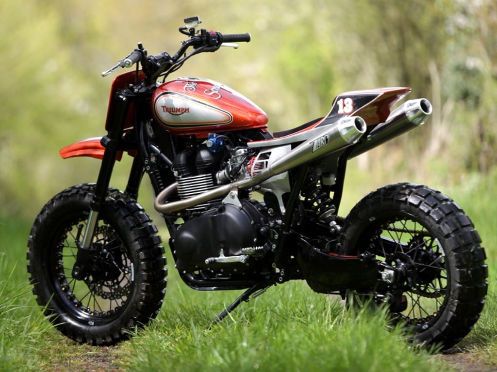 Transforming an urban T100 into a Scrambler is pretty easy, simply take one ordinary Triumph Twin, add knobbly TKC80 tires, shorty mudguards, a decent shock upgrade, MX bars and an aggressive sounding Zard exhausts system and you will have a Street Scrambler fit for the worst city road.