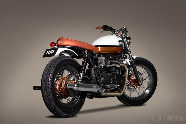 This is Urban Pearl’ by Ton-Up Garage Not the girl… the bike, though ‘Urban Pearl’ could be a ‘working girls’ nick name I suppose… if she was a ‘working girl’ then she is doing pretty well to buy a bike like this one.