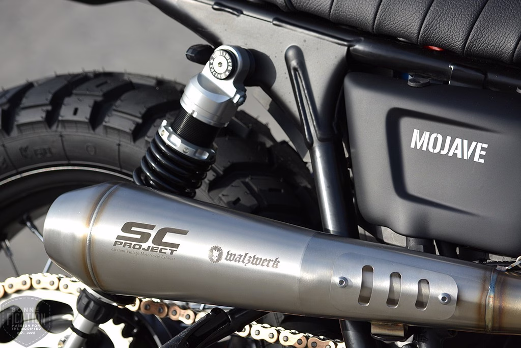 Marcus Walz of Schwetzingen, Germany based WalzWerk racing is just one of a handful of motorcycle builders worldwide who have turned his skills, much like Bud Ekins, to making the new Triumph Scramblers into wanna be Desert Sleds. Naming these retro classic WalzWerk Twins, the ‘MOJAVE 900‘. To mark the the success of these MOJAVE 900’s, a 10th bike was built based on a 2003 carb Bonnie with 30,000 km on the clock.