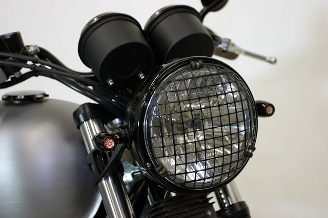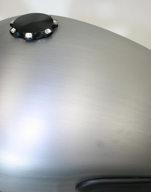 stripped off all paint, brushed metal and flat cleared all, glossed black side covers and flat black headlight bucket.