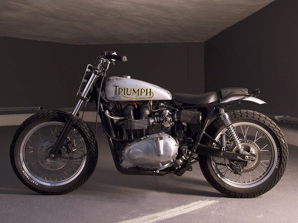 From the team of the Sicilian based SVAKO Motorcycles comes a Tracker based on an early carb model 790cc Bonneville — a build which stands out from many a Hinckley based Triumph Tracker in that it features the better looking slim ‘Tracker’ tank — and unusually the classic single seat and padded mudguard set-up seen on the early machines.